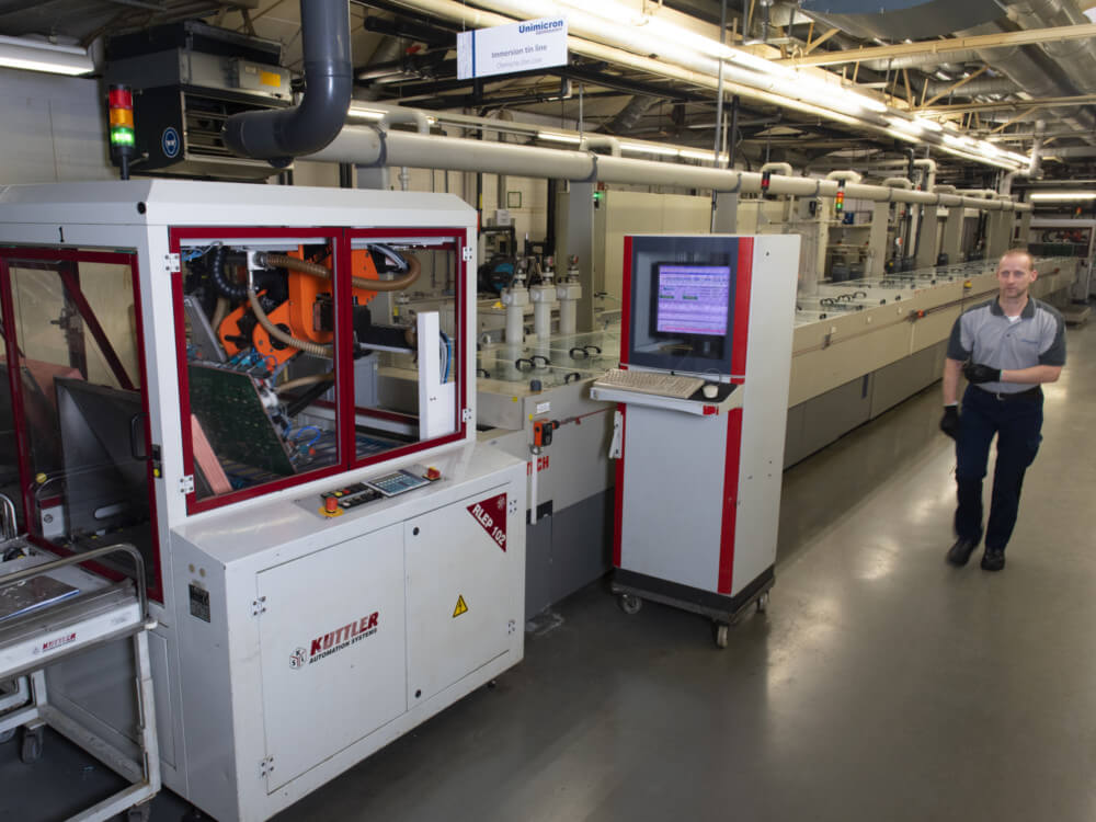 Bei Unimicron sind in der Abteilung Galvanik zum Teil auch die Prozesse Aufbringen der Endoberflächen integriert. Angeboten werden chemisch Zinn, chemisch Nickel/Gold (ENIG), HASL (Hot Air Solder Leveling) und als externe Prozesse chemisch Nickel/Palladium/Gold, Hartgold und OSP.