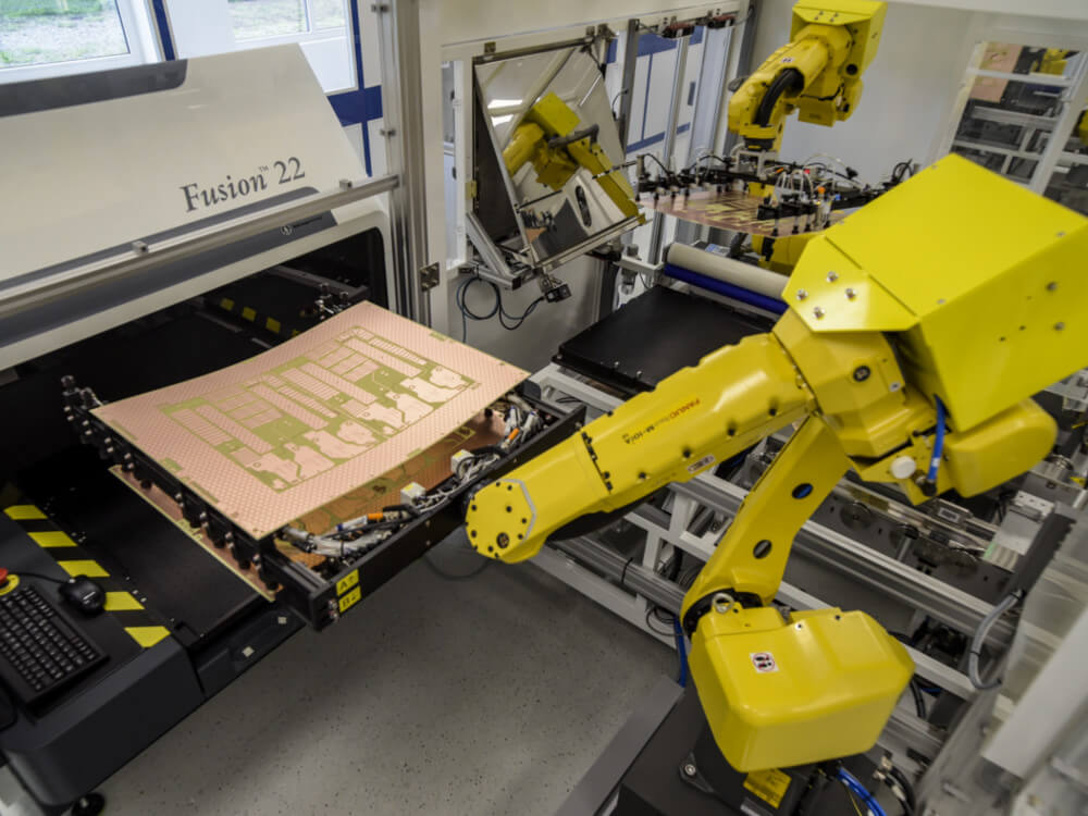 Die Innenlagenfertigung von Unimicron Germany ist die Modernste in Europa. Durch die Installation von Prozessen, Maschinen und Robotern der neuesten Generationen sind hier optimale Bedingungen für die Produktion von Hightech PCBs von heute und auch schon von morgen geschaffen.